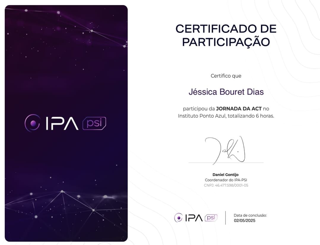 ▪︎ Graduação Bacharelado em Psicologia pela Universidade de Cuiabá - Unic. ▪︎ Pós - Graduação em Saúde e bem estar Saúde Mental em ênfase Atendimento Clínico pela Universidade de Cuiabá - Unic. ▪︎ HGU - Hospital Geral de Cuiabá - Psicóloga. ▪︎ Curso Terapia Comportamental Cognitiva - Cognitive Behavioral Therapy TCC Na Prática Clínica. ▪︎ Curso Transtorno de Déficit de Atenção e Hiperatividade TDAH. ▪︎ Com mais de cinco anos de experiência como psicóloga, sou uma profissional dedicada que exerce sua vocação na área da saúde mental com maestria e encanto. Com uma abordagem empática transcende o mero cuidado clínico, alcançando um nível de conexão genuína com os meus pacientes, os quais são guiados em uma jornada de autodescoberta e crescimento emocional. Emprego técnicas e estratégias psicoterapêuticas inovadoras, adaptando-se às necessidades individuais de cada pessoa. Busco sempre estabelecer um ambiente acolhedor e seguro para promover a confiança mútua entre paciente e psicóloga essencial para a eficácia do tratamento. Psicoterapia de forma leve, atenciosa e acolhedora, onde o paciente encontra leveza para explorar questões que lhe causam dor. E assim ter o melhor tratamento.